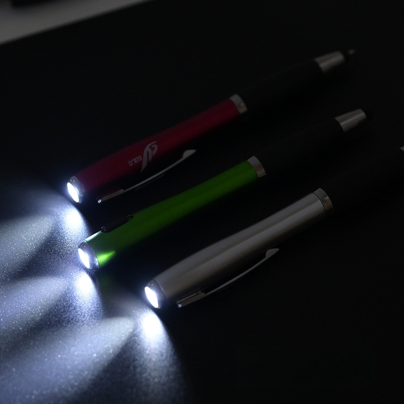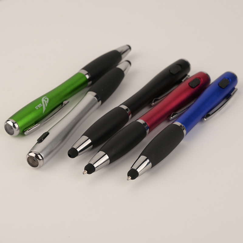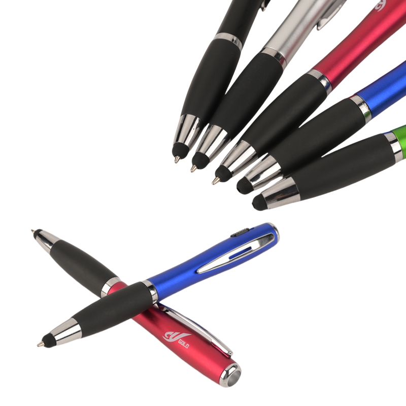 This twist-action retracable pen is made of plastic, lightweight and stylish. The 3 in 1 pen combines an LED flashlight, a touch screen stylus and a ballpoint pen. The pen has a comfortable grip that provides a smooth and easy writing experience, the stylus is compatible for any touch screen device, the LED flashlight provides ample light whenever you need it. Features a clip design, you can easily clip the pen to your carrying case, pocket, book, diary and more. Great item for promotion events. Your company name and logo is welcome, price includes shipping door to door.