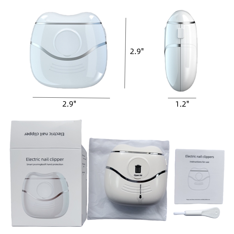 This nail clipper guarantees precise and safety nail trimming, featuring a blade hidden behind a curved recess, offering peace of mind when caring for your baby's nails (requires an adult to accompany the use). The ergonomic design ensures ease of use for all while providing a comfortable grip, and its portable design allows for convenient use on-the-go. Equipped with a built-in debris storage box, simply open the window at the top to effortlessly dispose of nail debris for quick and easy cleaning. Compact and lightweight, it's your perfect grooming companion for home and travel. Conveniently powered by two AAA batteries, it's ideal for the whole family-adults, seniors, and children alike. Your logo can be customized, price is including shipping cost.