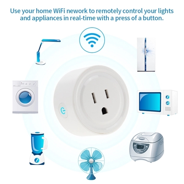 Control your home appliances anytime, anywhere with this smart WiFi plug. Compatible with voice assistants like Alexa and Google Assistant, it allows hands-free on/off control via simple voice commands. Use the mobile app to schedule timers, monitor power usage, and remotely manage devices from your phone. Compact and easy to set up, it's perfect for lamps, coffee makers, heaters, and more-making your home smarter and more energy-efficient. Your custom logo is welcome. Price is based on 1-color printing 1-location and includes shipping.