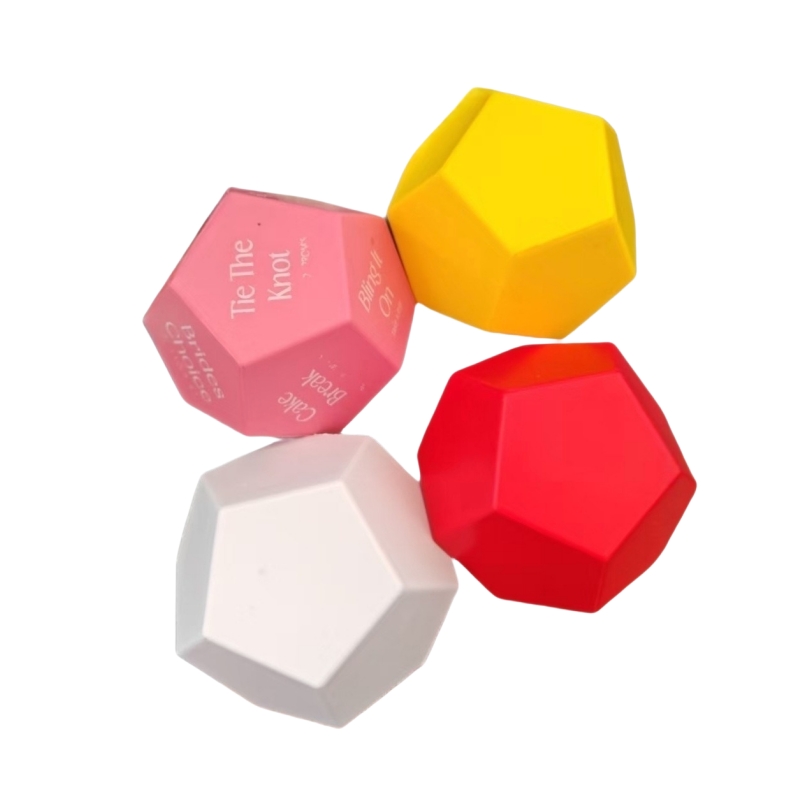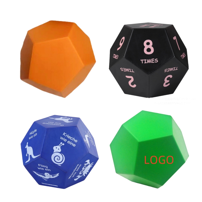 This dodecahedral stress ball is made of soft and elastic PU material, it has a comfortable and skin-friendly feel, rebounds quickly after being squeezed, and is non-deformable with repeated use. Perfect gift for children, school teachers, teenagers, office workers, athletes, the elderly, injured people, etc. It can be squeezed and played with almost anywhere to stress relief. Suitable for scenarios like office relaxation, study decompression, and daily mood relief. Your logos are welocme, price is including shipping cost.