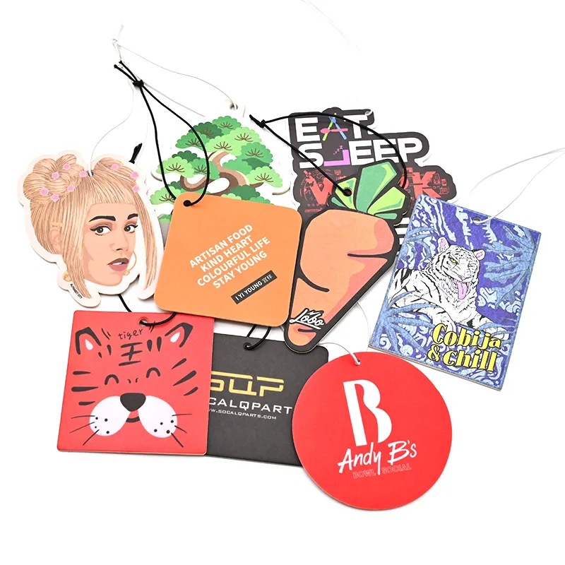 The pendant car freshener is made of premium absorbent paper with essential oil, ensures prolonged scent release that lasts for weeks. The air fresheners not only can be use for car, also can be applied for home, wardrobe, bedroom, office, and other places you want. A delightful and thoughtful gift for classmates, teachers, colleagues and girlfriends. Imprinted car fresheners can be customized with logos, slogans, or designs, making them an effective promotional tool. Various scents are available for customization. Price includes shipping by air door to door.