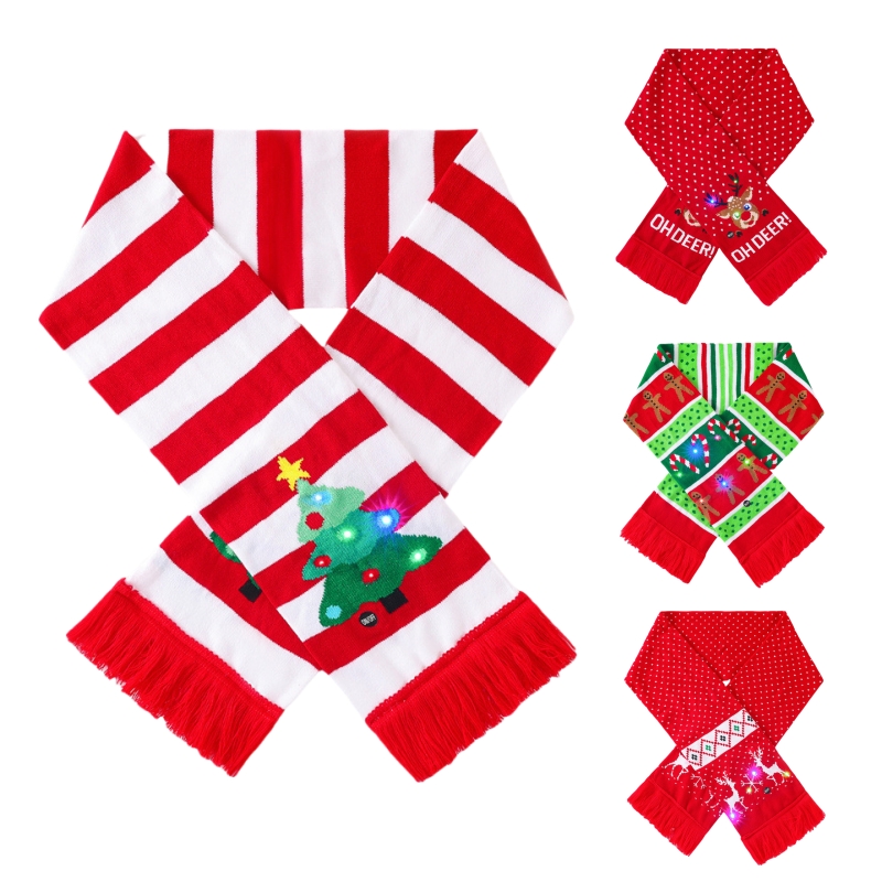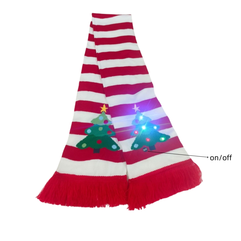 The LED light scarf is woven with soft acrylic fiber, warm and comfortable, not easy to deform or fade, serviceable for long time use. Each scarf features bright LED lights that flash and blink, creating a dazzling effect, with easy on/off LED functionality, making it both practical and eye-catching. Suitable for most adults, men, women, and teenagers, beautiful and delicate, can make you look stylish, improve your whole temperament and bring you a good mood on Christmas party. The size is 59" x 6.8", other smaller sizes for kids are also available. Your logo can be customized. Price includes shipping door to door.